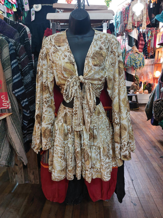 Gold Silk Crop Top & Rara Skirt Matching Set Indian Silk
